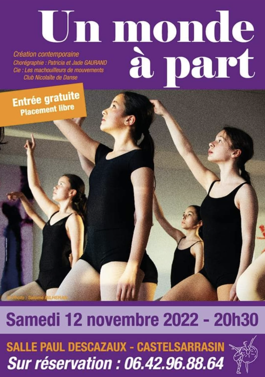 Mis en scène par Patricia et Jade Gaurand avec la compagnie des mâchouilleurs de mouvements (Club nicolaïtes de danse). Représentation le samedi 12 novembre 2022 à Castelsarrasin.
